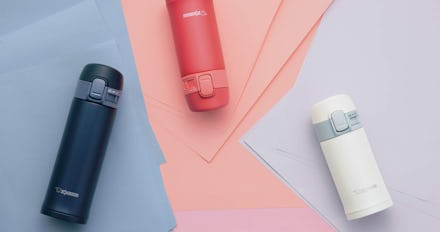 The double-wall vacuum-insulated design keeps drinks hot or cold for up to six hours. Additionally, the mouthpiece and lid can be disassembled for easy cleaning, but all pieces should be hand-washed. The 7-ounce mug is only available in coral and white, but you can opt for colors like marine blue and lime yellow in larger sizes.