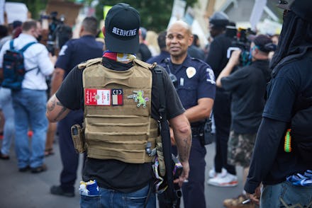 In a press release, Facebook announced that it had removed 220 Facebook accounts, 95 Instagram accounts, 28 Pages, and 106 groups that were believed to be a part of a network of users looking to commit acts of violence. The company described the now-banned accounts as being tied to the far-right extremist Boogaloo movement and served as a sort of recruitment network. Mic reached out to Facebook for additional details but the company did not respond.