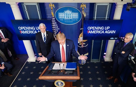 Even before giving the governors his blessing, states had already been laying out a patchwork response to coronavirus — largely in the absence of, or even in direct conflict with, leadership from the Trump administration. In fact, the same day Trump announced his guidelines, a consortium of Midwestern states (including two Republican governors) became the third such confederation create their own framework for reopening their regional economy, after similar efforts on both the West and East coasts. The moves came after other reportedly half-baked announcements from the administration, including a rambling roll-call Tuesday of business leaders and campaign donors whom, the president said, had joined a task force to address the lagging economy. A number of the alleged participants claimed to have had no idea they were involved in the president's plan.