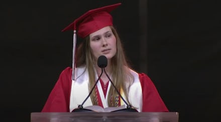 "I’m talking about this today, on a day as important as this, on a day honoring the students’ efforts in 12 years of schooling, on a day where we’re all brought together, on a day where you will be the most inclined to hear a voice like mine, a woman's voice, to tell you that this is a problem. A problem that can't wait," she added later in her remarks. "I refuse to give up this platform to promote complacency and peace, when there is a war on my body and a war on my rights."