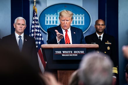 Something weird and bad seems to be brewing in the president’s brain. After downplaying the coronavirus crisis and wasting valuable months with statements like this, President Trump recently had an abrupt change of heart about the pandemic — reportedly following an Imperial College analysis that showed the possibility of 2 million deaths in the U.S. — and began pushing the country towards drastic and necessary steps. He gave press conferences flanked by top epidemiologists like Dr. Anthony Fauci, and endorsed social distancing proposals, including closing schools and limiting gatherings.