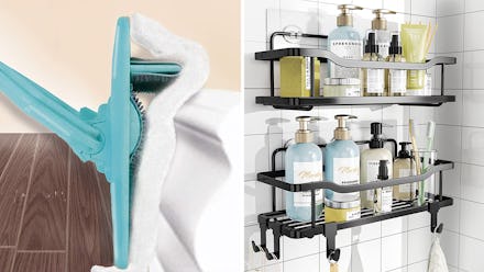 Whether you need somewhere to store toothbrushes, toothpaste, razors, or scrubbers, this toothbrush holder has got you covered. It mounts to your shower or bathroom wall using double-sided adhesive, so there’s no drilling required — and there are even drainage holes along the base to help keep everything dry.