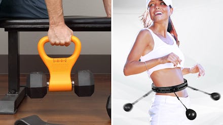 This grip handle keeps you from having to buy even more equipment to have a complete at-home gym. The textured handle opens so you can place any dumbbell inside and lock it in place. Then, your hand weight will instantly be transformed into a kettlebell and expand the amount of exercises you’re able to complete. It can hold up to 55 pounds and weighs just 1 pound itself so that it won’t weigh down your gym bag if you bring it along for an outdoor session.