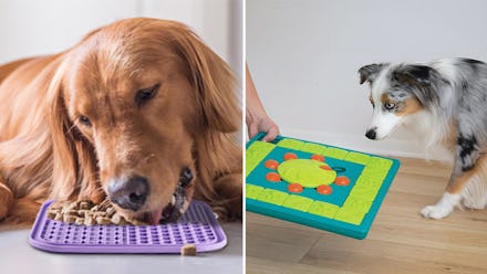 Some days are just too busy to find time to play with your dog — but that doesn’t mean there aren’t other ways you can keep them busy. “A great way to keep dogs busy and mentally stimulated is to provide enrichment,” explains Dr. Linda Simon. “This includes things like snaffle mats, lick mats, treat-dispensing balls and chews.”