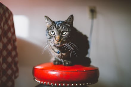 While you might find it comforting to pet an animal, cats will only return your physical affection if they like you, Christman tells me. “If a cat is happy, they might hop into your lap and knead into your legs with their front paws. While the feeling of claws poking at your skin may not scream ‘affection,’ but cats view this gesture as soothing. Kneading into your legs or lap mimics the way that a kitten gets milk from its mother.”