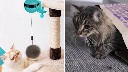As much as you may want to, it's impossible to play with your cat 24/7. So keep your kitty entertained while otherwise occupied with this interactive cat toy. It's battery-operated and easily installed onto any table in minutes, where it will randomly lift and lower the attached cat toy, stimulating your cat's natural hunting behaviors. It comes with a gray fur-ball attachment and a feather toy attachment, so your cat has their choice of prey. One happy reviewer calls it the "perfect kitten toy" and states, "As a kitten, he has more energy than you can imagine. So having this toy to help drain that energy is perfect."