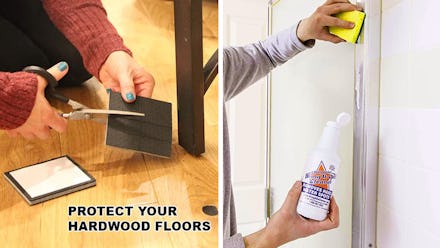 Hack: Place these gripper pads on your chair legsYou’re proud of the lovely wood floors in your home and take great pains keeping them up, but then the unthinkable happens: You have friends over for dinner, someone pushes their chair back, and screech... you hear the scratch before you see it. Don’t take any more chances — put these furniture gripper pads on the bottoms of your furniture legs to prevent damage. They’re gentle on wood and can be trimmed to size.
