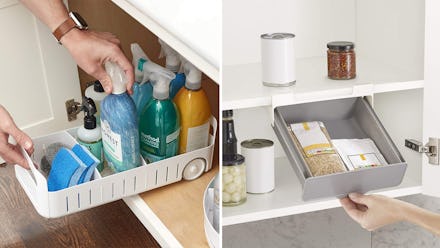 Though they can be used in any cabinet, madesmart’s 2-tier slide-out baskets are optimal for taming below-the-sink wilds. The sturdy drawers have dividers for extra organizational power. They’re the number one seller in Amazon’s Trays, Holders, and Organizers category — one reviewer stuck them in the fridge and called it “the best money I ever spent.”