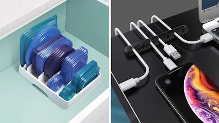 With adjustable compartments that can fit lids up to 9 inches wide, this organizer is a great purchase — especially if you have a jumbled cabinet filled with mismatched plasticware. Setup only takes a few minutes without using any tools, and the plastic frame is even BPA-free.