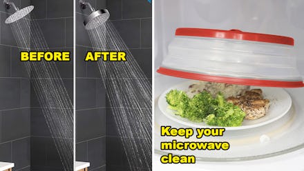 Fix: Use this vented lid to keep food splatters containedIf you’ve ever spent too much time cleaning tomato sauce off the walls of your microwave, you need this vented, collapsible splatter-proof plate cover. Set it over a plate or bowl before you start the microwave and your food will heat up just as well — the vents insure proper airflow — but any mess will be contained to this easy-to-wash lid.