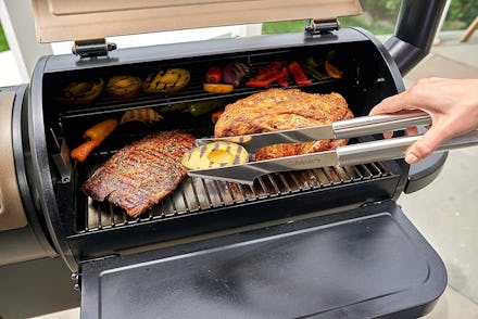 A good pair of stainless steel tongs is another essential tool, since you'll want to be able to move your food around on the grill to hit different heat zones. These Weber tongs have a near-perfect overall rating of 4.8 stars from Amazon shoppers, with many commenting that the tongs are durable, easy to clean, and easy to hold. They have soft-touch handles that won't get too hot, and the design of the tongs makes it simple to grip everything from steaks and burgers to corn on the cob. These tongs are also dishwasher-safe.