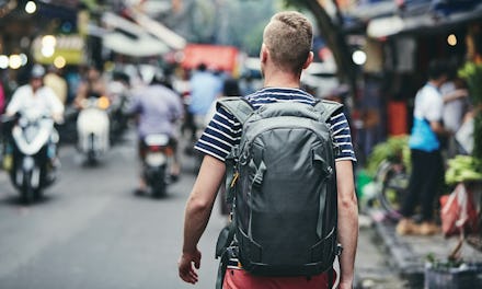 "The top of your bag should be in line with the top of your shoulders. The lower the bag sits on your back, the more stress on the lower back," Pippin adds. He also notes that it's important to make sure that there's not too much space between your spine and the backpack, as that could put additional stress and tension on your lower back.