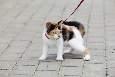 Certain cats if presented with a leash, will chew the thing right off immediately and shoot you a “don’t try that shit with me again” look before retreating to their chosen lounging-spot of the week. But especially if you live in a city, some type of leash is necessary. Christman has some good tips for getting your cat acclimated. “Believe it or not, cats tolerate leashes and harnesses very well,” he says. “If you have them as kittens, it makes them more likely to be desensitized to walking them on a leash. They should be introduced to the harness by putting a harness on indoors — the first few times they may roll around, hiss, and try get rid of it, but eventually they will accept it. Let them become accommodated to wearing it before attaching a leash to it and going outdoors.” That’s where I might’ve gone wrong with baby Cabbage. I just just threw a harness on her and took her right outside. She was not feeling it.