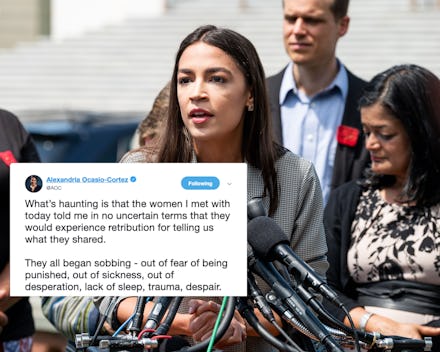 In June, reports emerged that the children held inside the overcrowded Clint detention center were being denied access to hygienic products, medicine, and adequate food and water. People responded with widespread condemnation of the Trump administration's immigration policies, with Ocasio-Cortez leading the charge. During her tour of the centers alongside Rep. Joaquin Castro, Rep. Rashida Tlaib, Rep. Joe Kennedy, and Rep. Ayanna Pressley, the politician witnessed the poor conditions herself, and live-tweeted her experience.