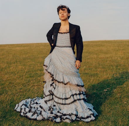Some conservatives are in a tizzy over Harry Styles’s styles on the cover of Vogue’s December issue. The former boy band member turned bonafide pop hottie showed off his fascination with traditionally feminine fashion in portraits by photographer Tyler Mitchell, where he poses in a luxuriously ruffled Gucci gown and suit jacket. With those tattoos peeking out, it’s just the right amount reminiscent of Alan Cumming in Cabaret to be super sexy.