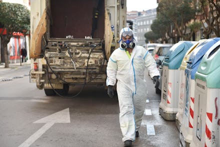 Of course, the potentially hazardous and infected waste isn't just coming from hospitals. It’s also coming from the homes of people who have been infected or exposed to the virus. According to a study published in the New England Journal of Medicine, the virus can live on cardboard for up to a full day, and can last even longer on metal or plastic — up to 72 hours. This may require extra precautions from sanitation workers in order to ensure they don't accidentally come into contact with contaminated trash. The World Health Organization (WHO) recommends those dealing with the potential virus-carrying garbage wear boots, long sleeves, gloves, and goggles or face shields when handling the waste. It's also important that people properly bag their trash so that sanitation workers don't have to interact with it directly. Thus far, according to WHO, proper precautions have paid off. “There is no evidence that direct, unprotected human contact during the handling of health care waste has resulted in the transmission of the COVID-19 virus,” the organization said in a technical brief published earlier this month.