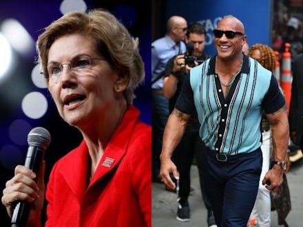 Elizabeth Warren and Dwayne “The Rock” Johnson are two very different kinds of famous people. Johnson just married his longtime partner Lauren Hashian and finished the press tour for his film Hobbes and Shaw — which earned more than $400 million worldwide. Meanwhile, Senator Elizabeth Warren is several months into her 2020 presidential campaign, sitting at third place in the national polls, behind Former Vice President Joe Biden and Senator Bernie Sanders. But despite having very different skill sets and areas of expertise, Johnson and Warren deeply admire each other’s work.