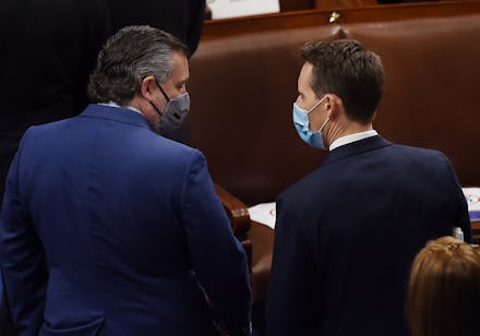 To be clear, neither Cruz nor Hawley seem all that disturbed by the fact that their purportedly responsible effort to simply debate — and okay, sure, maybe even overturn — a valid Biden victory dovetailed perfectly with the insurrectionists' own calls to do essentially the same thing, only with metal pipes and zip ties. Any similarities between their goals and the goals of the two lawmakers is purely coincidental, right? Nevermind that one added a patina of legitimacy to the other. Nope. Nothing to see here. Any suggestion to the contrary is "corrosive and dangerous," and you're the one tearing this country apart, not them.