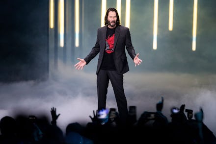 Keanu Reeves seems to be everywhere these days. The movie star took over theaters this spring with John Wick: Chapter 3 and managed to knock Avengers: Endgame off the top of the box office; he's made the rounds on late night shows, dropping some choice quotes and telling Stephen Colbert what he thinks happens when we die; and he completely stole the show when he popped up as Ali Wong's boyfriend in the Netflix movie Always Be My Maybe. The actor can basically do no wrong, so it's no surprise that Reeves received a raucous ovation when he stepped out on stage at E3 on Sunday to talk about his role in the upcoming game Cyberpunk 2077.