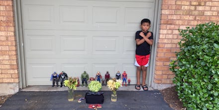 The first image of a kid-led vigil to go viral and tug on everyone’s heartstrings was of 7-year-old Kian Westbrook, whose Black Panther toy rests on a black plinth surrounded by flowers. His other Avengers action figures stand in solemn attendance, and Kian holds a “Wakanda Forever” pose. His dad, King Westbrook, explained Boseman’s significance to his son to Insider: