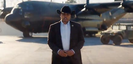 But, oh my GOD, I hate Flowers' first campaign ad — everything about it, from its power chord butt-rock soundtrack to its stock footage of military planes, computers, and dudes holding big guns. If you told me that this was an ad for a centrist Republican running for office in Nevada, I would believe you without a second thought. This is the oh-so-gently Blue-tinged equivalent of those idiotic Dan Crenshaw ads in which he jumps out of an airplane to show he's a tough guy. Like that "politics-as-action-movie" abomination, Flowers' campaign introduction is less about demonstrating how he would improve the lives of people in Georgia's 14th district if elected, and more about the sort of plasticine patriotic posturing that doesn't offer specifics beyond a G.I. Joe understanding of the world.