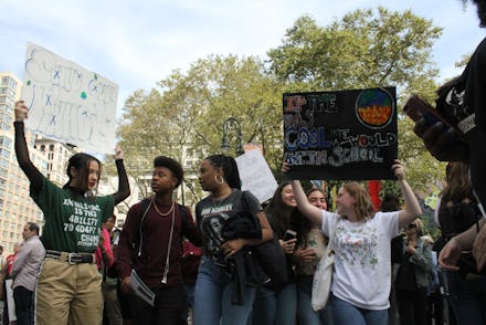 As the temperature rose in New York on Friday, the energy seemed to rise with it. Chants turned a bit more pointed, too. “Fuck Donald Trump! Fuck Donald Trump!” one group shouted as they all began their march down to Battery Park, at the southern tip of Manhattan. Phrases like “socialism,” “clean energy,” and “corporate responsibility” were being fluently discussed between the young activists, some of whom were still wearing braces.
