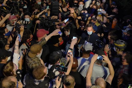 The scene itself was shocking: a sitting mayor tear-gassed during an evening protest, by federal agents who dropped into the city just last week as part of President Trump's supposed commitment of "law and order." But Wheeler hasn't exactly always been an ally to the movement. As he waded into the crowd Wednesday night to hear the demands of protesters, many booed Wheeler and called for his resignation. Local station Oregon Public Broadcasting reported, "Chants of 'Fuck Ted Wheeler' were interspersed all night with 'Black Lives Matter' cheers." After Wheeler left the protest, the Portland police declared a riot, which as OPB noted gave them the legal authority to use tear gas on the gathered crowd.
