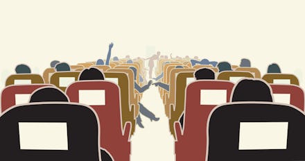 This might have happened not just because of small seats and tight spaces between them, but also because we Americans are getting bigger. American men have a mean width of about 40 inches. It doesn’t take a geometrist to deduce that fitting a human that is 40 inches wide into a space that is 28 inches wide requires some intentional angling and squishing. For a plane to be evacuated in 90 seconds, each person has a very short time to maneuver off the aircraft. Consider differently sized and abled bodies in that small space, add in some highly flammable materials, multiply by fear of death, and what you have is a not very heartening equation.