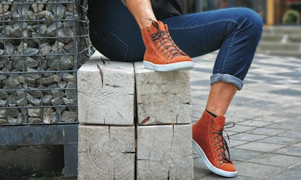 If you're looking for high-tops with classic style, you'll want to check out these brown leather sneakers from Vionic. The uppers are made with both leather and soft suede, which adds texture to the look, and they're accented with a cool perforated V design along the side. They also have concealed orthotic support, and have even received the American Podiatric Medical Association Seal of Acceptance. Designed by a podiatrist, the footbed also hugs your arches for a better fit.