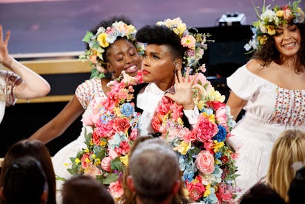 Janelle Monáe, who had a supporting role in Harriet, kicked things off with a musical number that appeared to pay tribute to all the films that got snubbed… First, she took the stage in a Mister Rogers-inspired red cardigan, singing “A Beautiful Day in the Neighborhood” directly to Tom Hanks. (He lost the Supporting Actor category to Brad Pitt, recipient of the first award of the night.) Then she launched into a version of her hit “Come Alive,” with dancers dressed as characters from movies like Us, Midsommar, Queen and Slim and Little Women. Bizarrely, there were also a couple dancing Jokers. Monáe had a couple pointed barbs for the Academy: "We celebrate all the women who directed phenomenal films," she said at one point, adding "Happy Black History Month," probably aimed at the Oscars for its lack of diverse nominees this year.