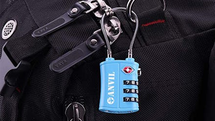 Constructed with a strong zinc alloy body and steel cable shackle, these Anvil TSA-approved locks are another great choice for half the price. The locks have a three-digit combination, which is not quite as secure as the previous lock's four-digit design but still dependable. This also makes them simpler to use so it may be a bonus, depending on your preference. The large numbers are easy to read and the flexibility of the cable-style shackles makes these locks easy to slide through your bag's zippers. Like the first pair, they also come with a lifetime guarantee .