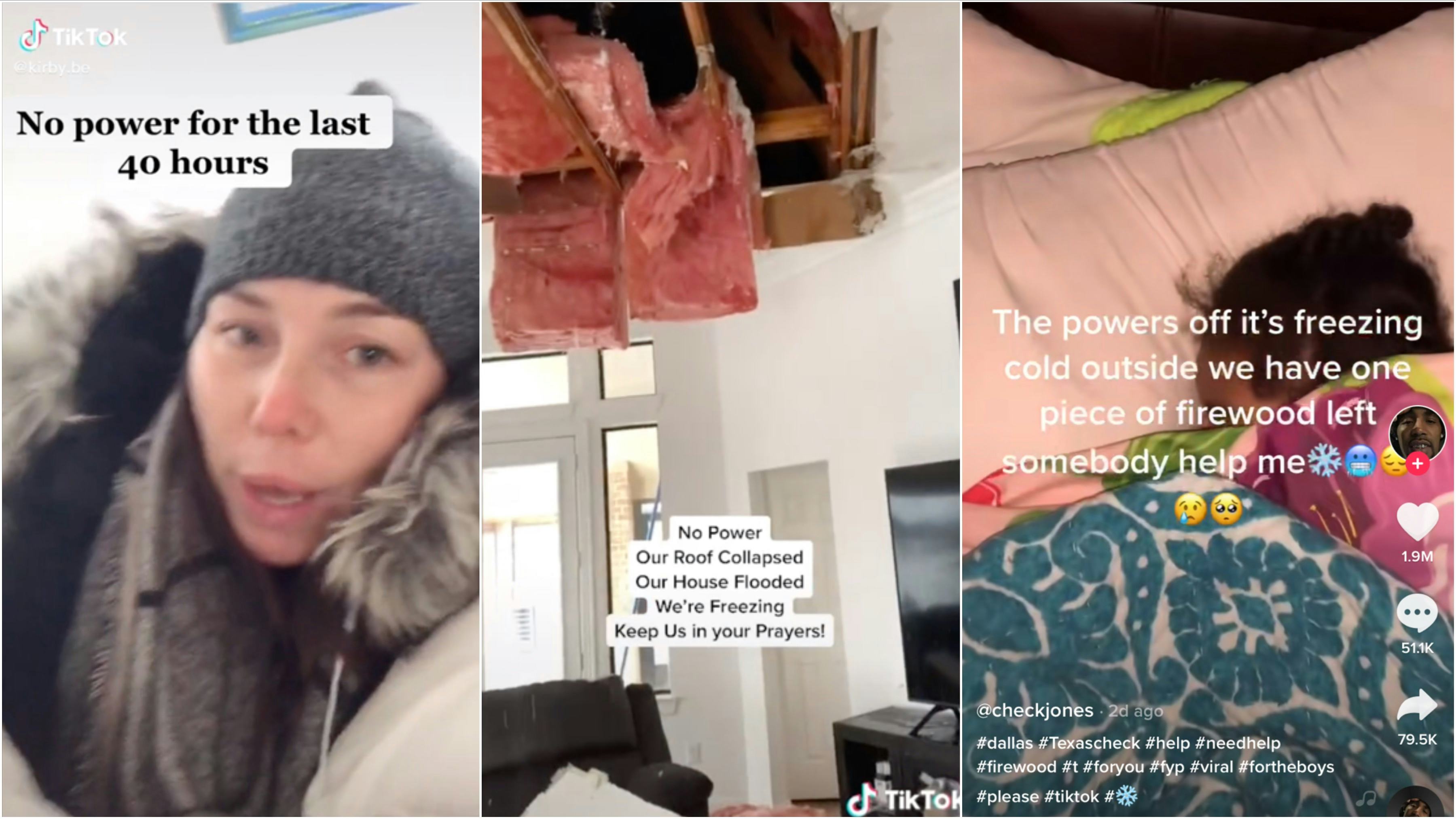 Early in the week, TikToks of Texans struggling to function in the snow inspired a certain amount of schadenfreude, as we laughed at a man slipping and sliding in vain on his ice-glazed patio, for example. But as the crazy blizzard devolved into life-or-death scenarios — people are risking carbon monoxide poisoning by using gas grills indoors and running their cars in their garages to to stay warm — the TikToks coming out of Texas have taken a harrowing turn. Now, the platform is functioning as real-time documentation of a humanitarian crisis.