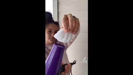 Here’s one user, who picks up a snowball, holds a candle flame to it, and drops a big gotcha when the snow doesn’t melt away and leaves a black mark. Then, she tries it again with a hair dryer: