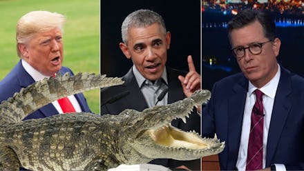 Colbert could barely contain his smugness and blew a kiss at Obama. “Ah remember back in 2011 when a president talking about alligator moats was a joke, and the most embarrassing thing about Kevin Spacey was K-Pax? It was a simpler time,” the comedian said.