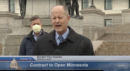 "In hindsight, we could have handled the event and our information sharing differently," Gazelka wrote in a lengthy press release responding to a series of revelations regarding the Minnesota GOP's decision to hold a number of in-person events during a massive surge in coronavirus cases in the state, including a post-election "victory party" for anywhere between 100 and 150 attendees. Shortly thereafter, at least four Republican lawmakers and multiple staffers were confirmed to have contracted coronavirus — among them, Gazelka himself. The problem, however, is that the party allegedly neglected to inform their colleagues across the aisle of the mass coronavirus outbreak within their ranks, choosing instead to alert only their fellow Republicans of the infections.