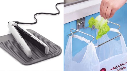 Some use this trash bag mount in place of a standard bin in RVs, apartments, and small kitchens — but it's also especially helpful as a temporary trash receptacle during meal-prep. Simply chop, de-seed, or peel your ingredients on the counter before pushing them straight into the bag that's hanging below. It's designed to fit over standard cabinet doors, can support a surprising amount of weight, and works alongside recycled plastic shopping bags.