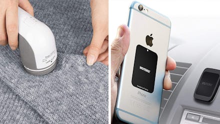 This magnetic car phone mount is designed with six powerful magnets that keep even the bulkiest smartphones secure when you're on the road. It attaches easily to the dash with the included 3M adhesive strip, and reviewers report that it's "super strong" and "works like a charm."