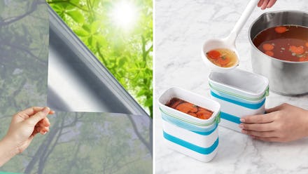 These food block makers are made for freezing food into slim, easy-to-store blocks. Each one features two plastic halves that simply secure together with thick silicone bands. Insert a quart-size storage bag, fill the bag with soup to freeze, secure the bag, and stick it in the freezer. Once frozen, take the container apart to reuse it.