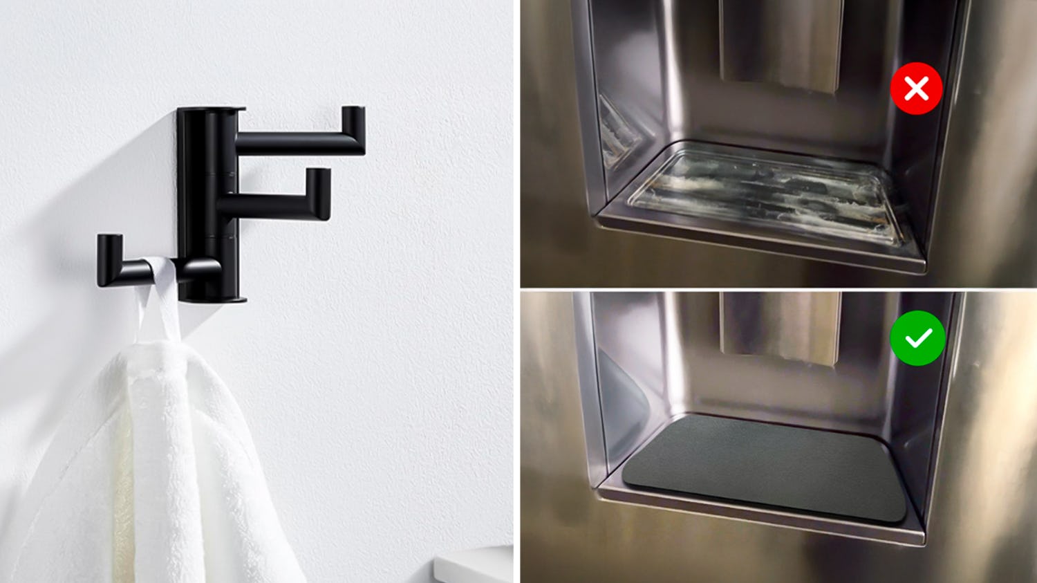 If the area around your fridge’s water dispenser looks like a tiny swamp, slip this highly absorbent pad under your spout. It quietly catches every splash and drip, keeping your stainless steel looking clean instead of crusty. Choose from rectangular or semi-circular shapes for a perfect fit on nearly any refrigerator model. It stays neatly in place and eliminates the water stains and grime that build up over time.
