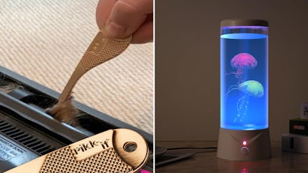 Create the mood of an aquarium in your bedroom, office, or bathroom with this two-pack of jellyfish lamps that emit a soft watery glow as flowing faux invertebrates swim into the light. You can change the color and brightness of the light with the included remote control to use it as a night-light or ambient illumination. “Very relaxing to watch. It helps me focus better,” reported one reviewer.