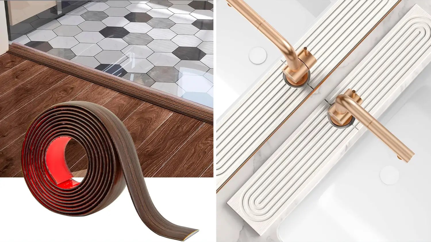 Cover the seams where wood, tile, or laminate flooring meets with this brilliant adhesive tape. It’s made with a faux wood grain and scratch-resistant finish that’s less likely to show damage from everyday foot traffic, resisting dirt and scratches while creating a smooth transition between rooms. You can even use it on countertops to create the look of a custom build.