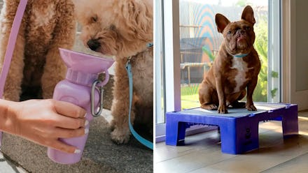 Fix: A dog water bottle with a built-in bowlDogs should drink approximately 1 ounce of water per pound of body weight each day — but meeting that threshold isn’t easy when you’re on the go. Nicole Ellis (certified professional dog trainer and pet lifestyle expert for Rover) recommends this dog water bottle, which is leak-proof and fits in cup holders, but has a bowl that fills with water when you squeeze the bottle. “It comes on every hiking trip, car ride, and adventure,” said Ellis. “Easiest way to bring and offer water to my dogs."