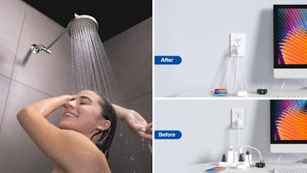 “The bedroom trick that works every time: Replace standard outlets with USB outlets,” says Martinez. “Sounds basic, but it eliminates bedside cord chaos and makes the room feel modern instantly.” This pack of two USB-C outlets has two standard plugs for lamps and other old-school devices, two USB-A ports, and one USB-C port. That means you can plug anything into it without looking for adapters or plugs.