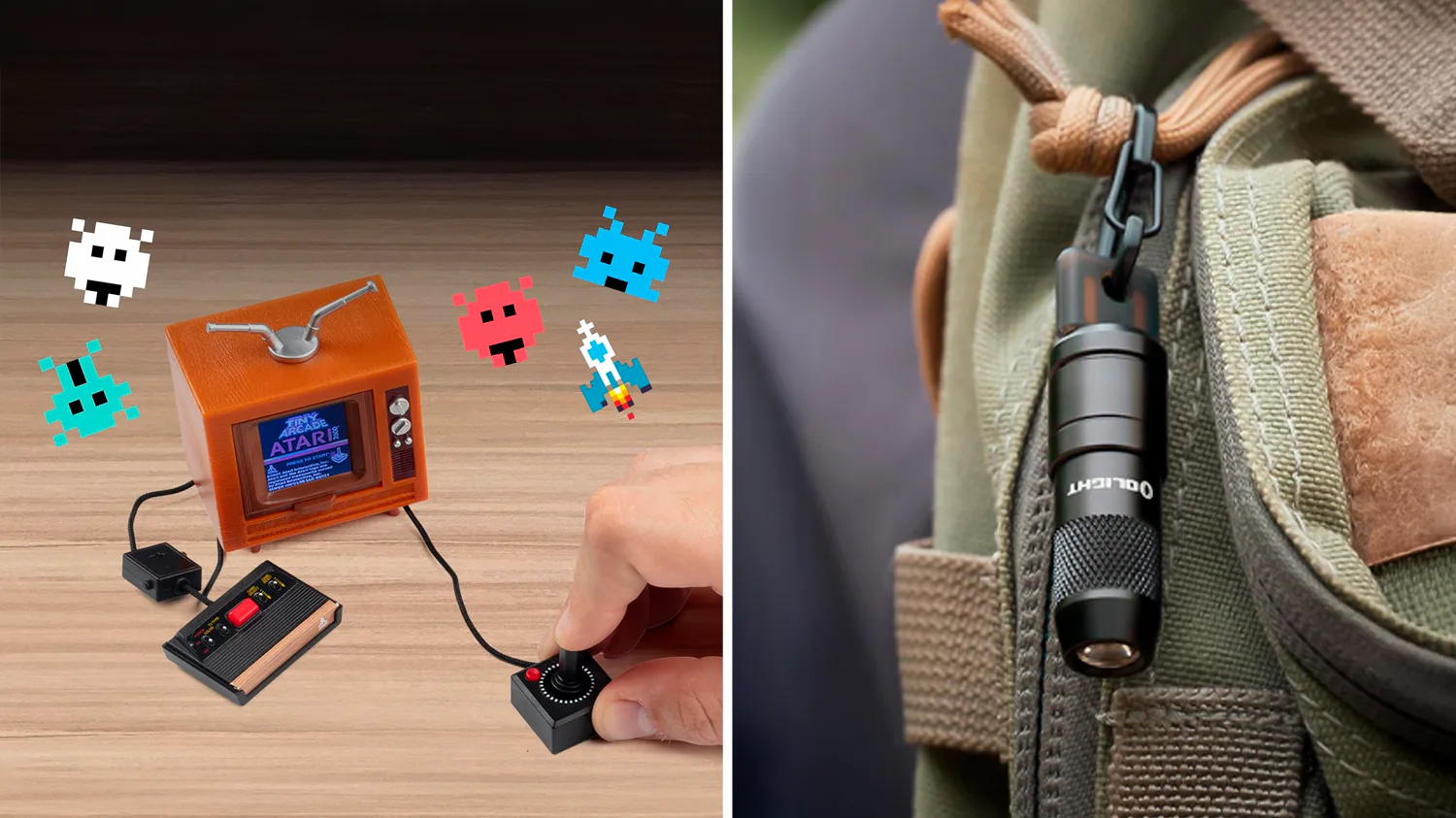 Bring a little old-school gaming to your desk with this mini arcade machine. It features an old-school joystick, a bright 1.5-inch color screen, and authentic retro styling that looks just like an old-school TV gaming setup. It comes preloaded with 10 games and is powered by three AAA batteries (included), so it’s ready to go right out of the box.