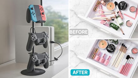 Tired of tangled wires and cluttered gaming setups? This universal game controller stand is compatible with nearly every modern game controller, making it a space-saving hero in your entertainment area. You can adjust the height and direction of each level, and it even comes with hooks to keep those annoying wires in check. Crafted from sturdy steel, each tier can bear up to 1.1 pounds of gaming gear.