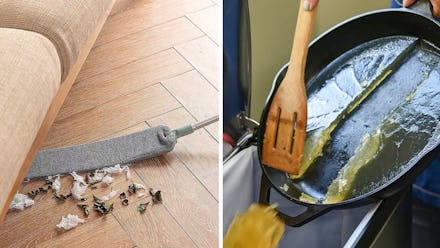 Solution: Clean cramped spaces with this skinny, flexible dusterNot all vacuum cleaners or dusters can reach every single nook and cranny of your home, which is why this flexible microfiber duster is a great investment. This duster is bendable, allowing for better mobility when you’re getting into tight corners and narrow cracks. Plus, the expandable pole gives you a greater reach range when you’re cleaning the areas underneath the bed or your couches. This duster can be used wet or dry to get everything from the gap between your stove and wall to your shutters nice and clean.