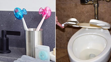 You'll never have to touch the toilet seat again, thanks to this best-selling handle lifter. It installs easily with sturdy peel-and-stick adhesive and fits onto all kinds of toilet seats, including flat, curved, and recessed. Each order comes with two lifters so you can place one on the lid, too.