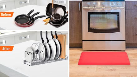 This ingenious pot and pan rack eliminates the frustration of finding the perfect fit for your dimensions by being completely adjustable. It can be expanded to fit up to 10 pans and includes customizable dividers so you can accommodate different sizes. Made of durable iron, it features a rust-proof coating and silicone feet to prevent scratching surfaces. At the affordable price point of $24, use this rack to store anything from pans to lids to baking sheets.