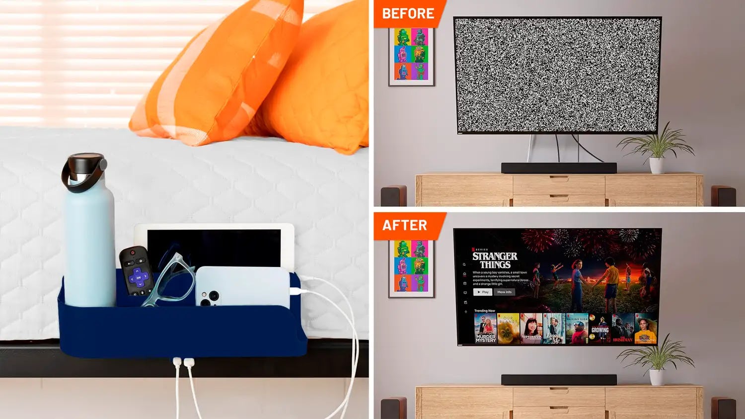 Eliminate visual clutter around the TV with the help of this slim TV cord hider. It has a discreet 3.75-inch diameter and 1.25-inch depth, and comfortably fits four HDMI cords. The kit includes a hole saw to attach to your drill for simple installation that’s estimated to take approximately 20 minutes.