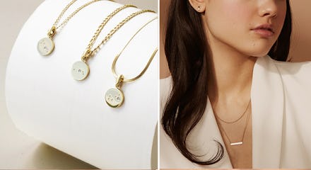 Every piece in the brand’s collection is made using a base of stainless steel, which is hypoallergenic and free of lead, cadmium, and nickel. Their jewelry is available in waterproof stainless steel and most pieces are also available in yellow gold- and rose gold-plated options. The sparkling stones in their collection include cubic zirconia and they also carry shockingly affordable lab-grown diamond pieces starting at $86 — both conflict-free options you can rock with a clear conscience.